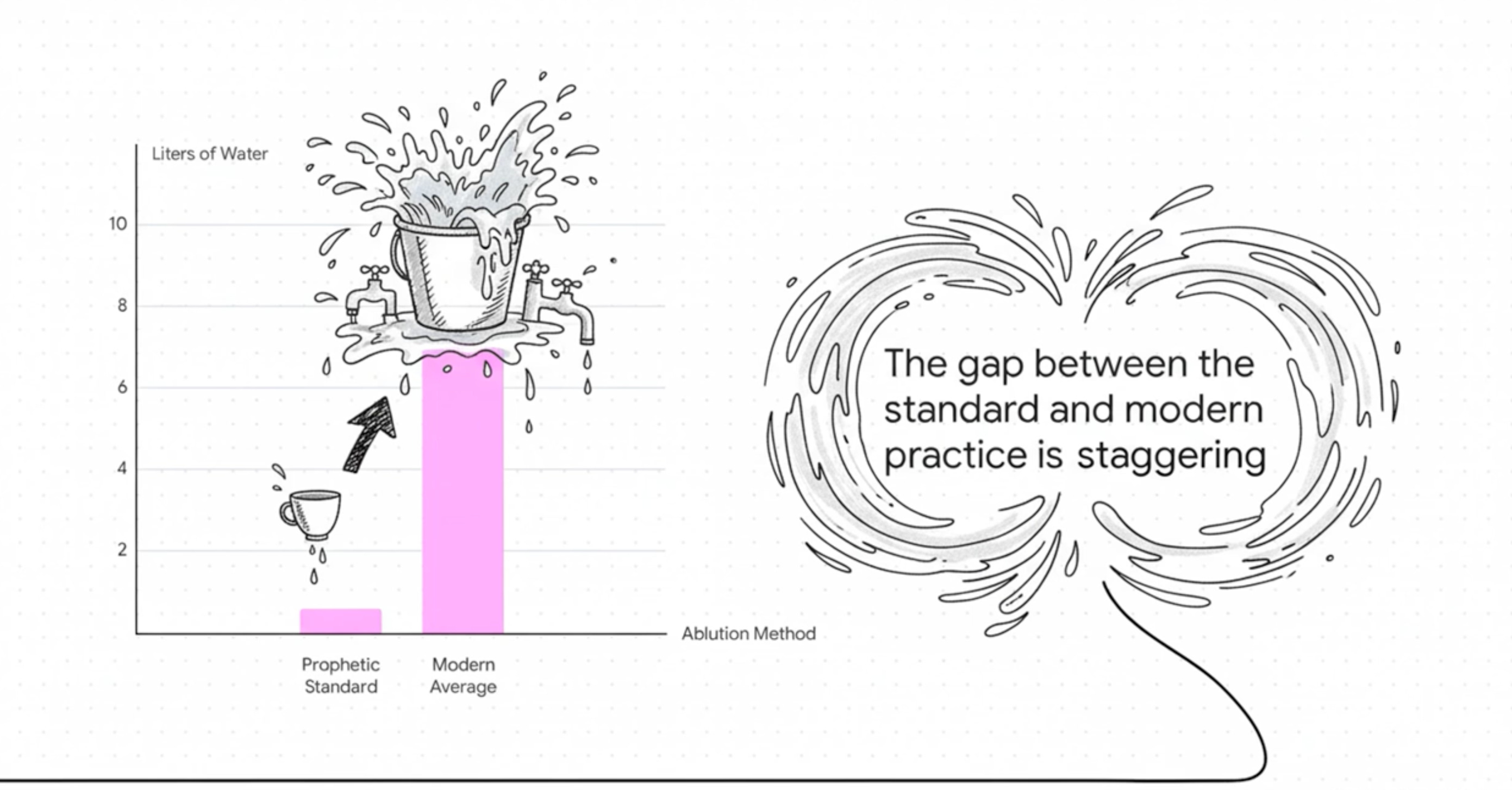 Muslims use up to 10L per wudu. The Prophet used 0.6L. The gap costs billions