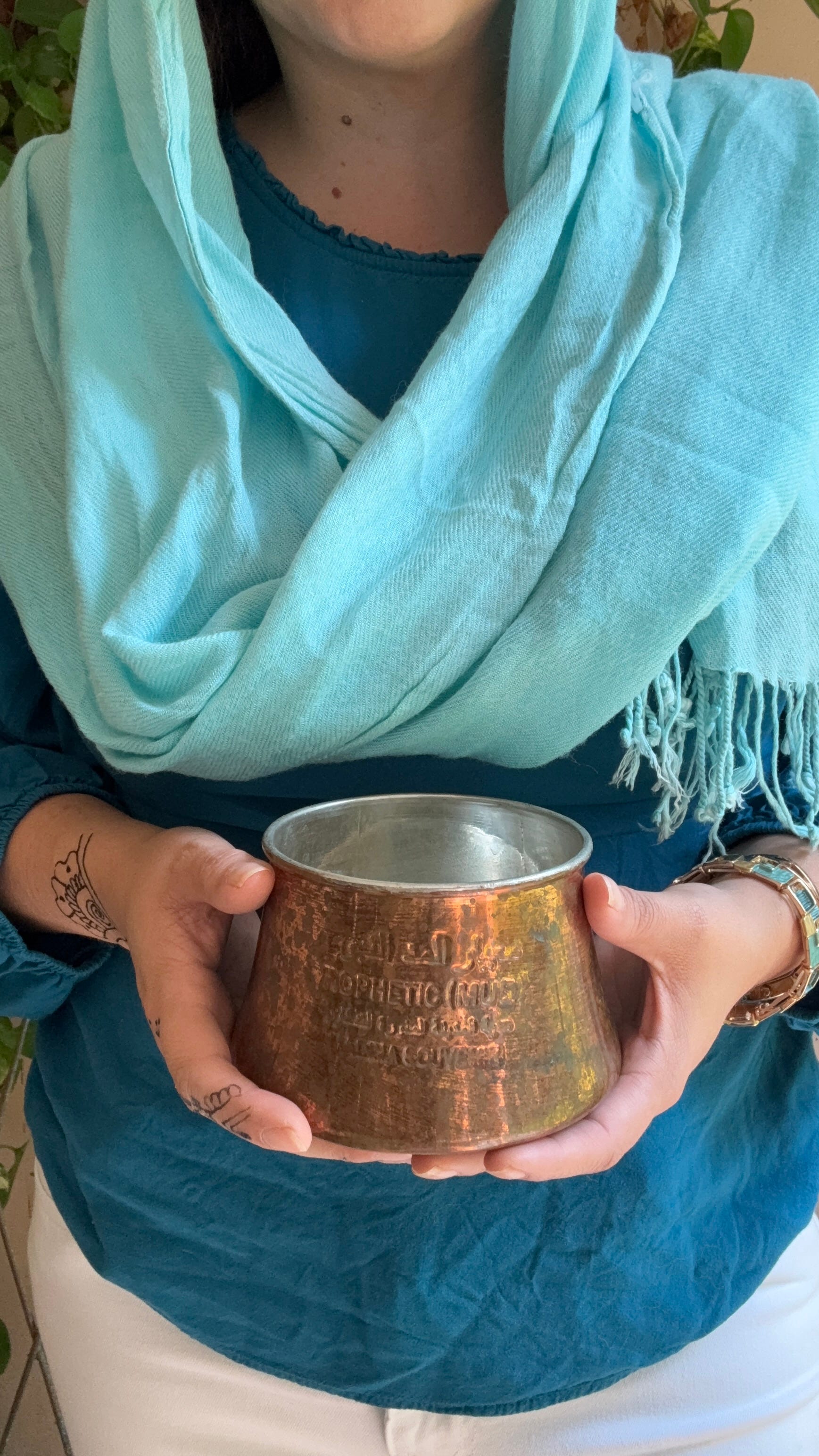 I learned that the hard way, standing in the old market of Madinah, holding up a picture on my phone and asking shopkeeper after shopkeeper if they had one. Most looked at me with polite confusion. A few thought I was looking for mud, the dirt kind. One man pointed me toward the souvenir section near the back of his shop, where I finally found it: a small copper vessel, stamped with the words “Prophetic Mudd” and “Madina Souvenir,” sitting between decorative prayer beads and miniature mosque replicas.