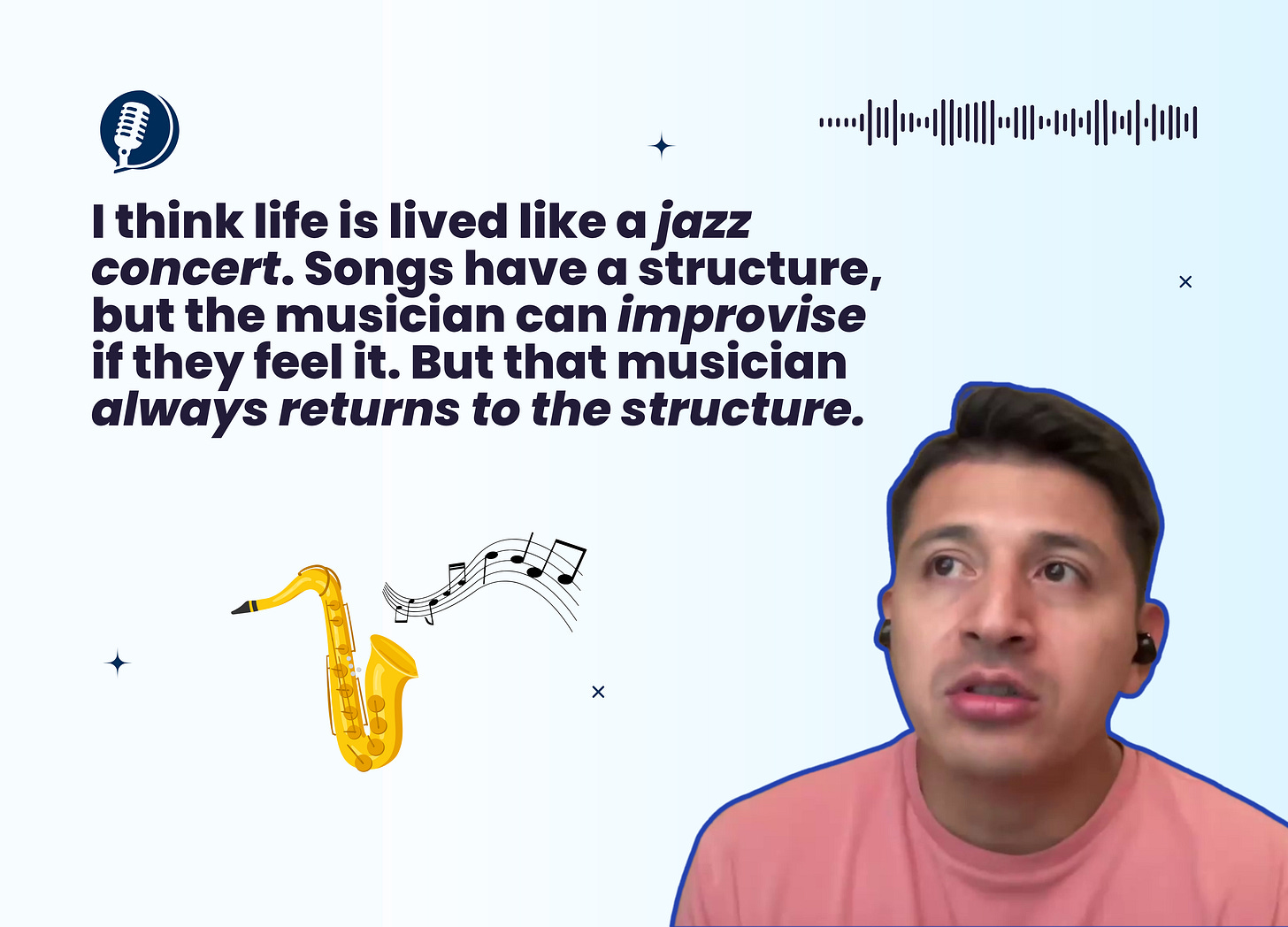 I think life is lived like a jazz concert. Songs have a structure, but the musician can improvise if they feel it. But that musician always returns to the structure.