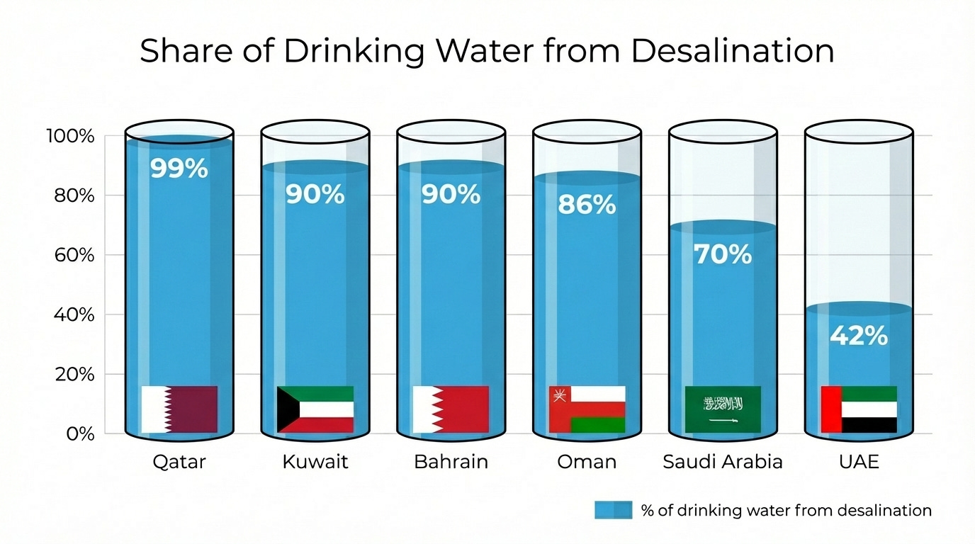 In the GCC, your tap water feels free. It costs 25x more energy to run than water almost anywhere else on Earth.